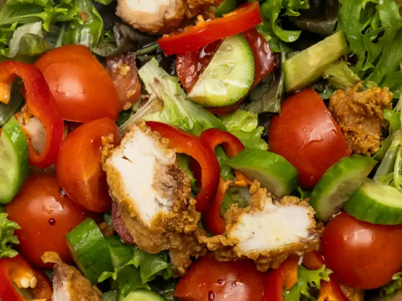 - Fresh mixed salad with chicken, boiled egg, and roasted seeds.